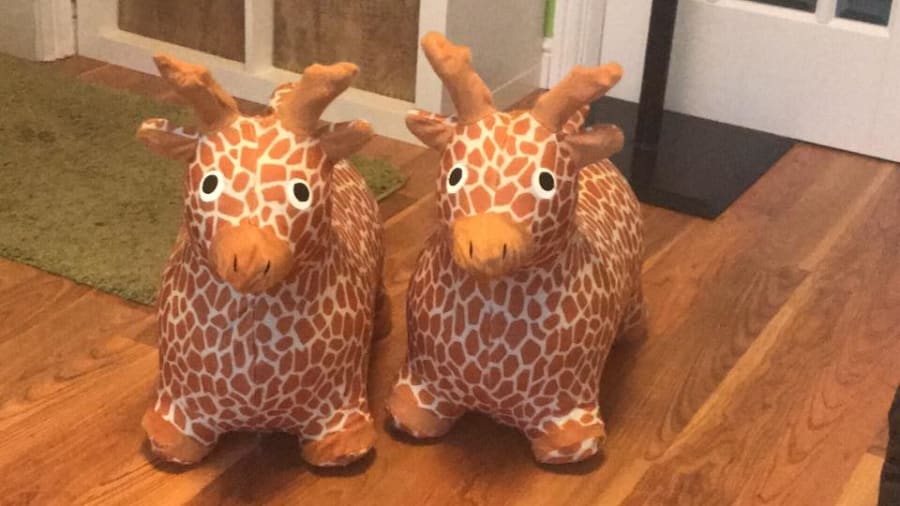 Our Jungle themed 15ft x 11ft x 9ft high bouncy castle, 14 piece, hand painted jungle soft play and 2 giraffe hoppers.