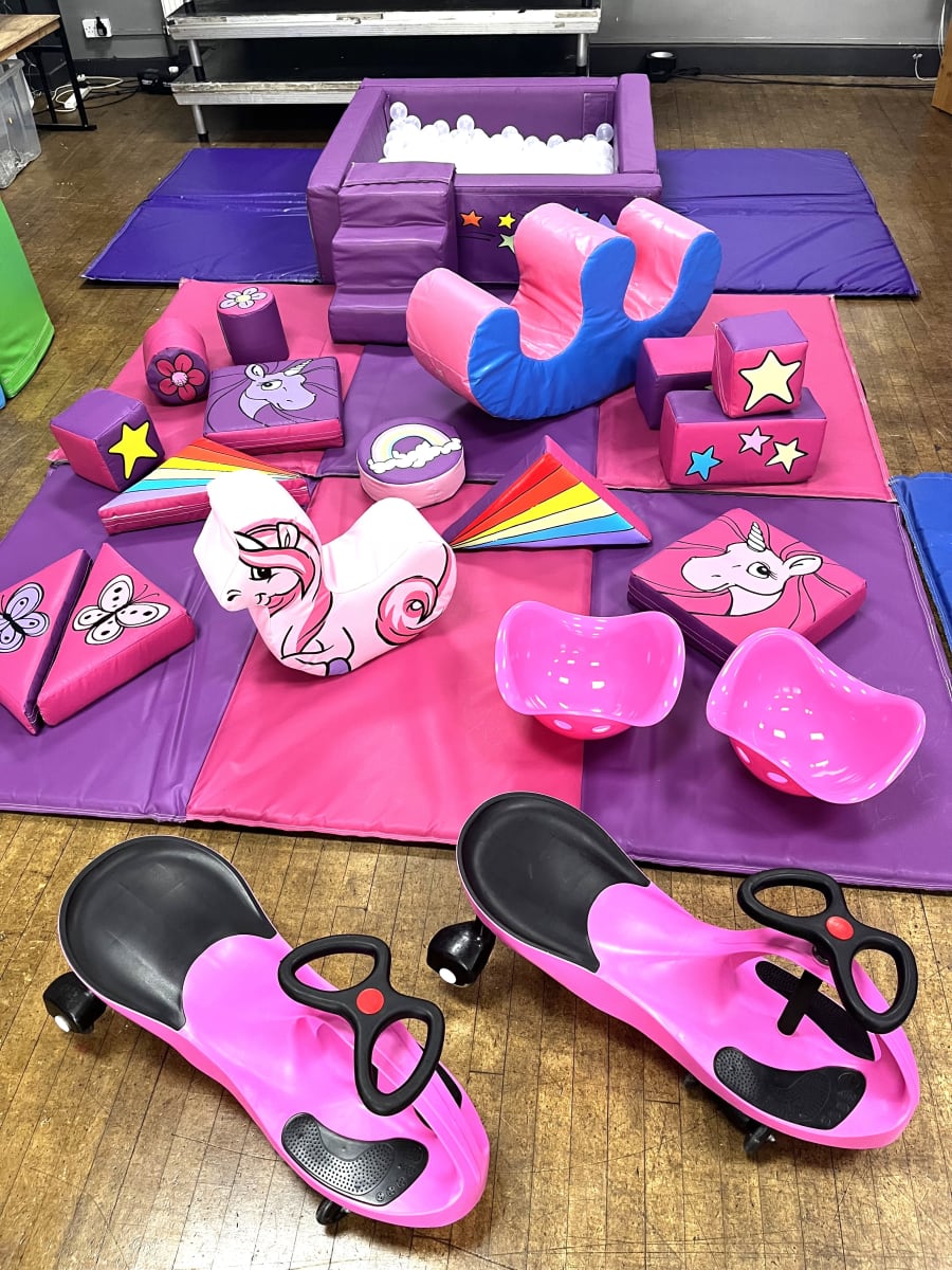 Also available without the ball pit and wiggle cars - see Rainbow Unicorn Castle & Soft Play Package