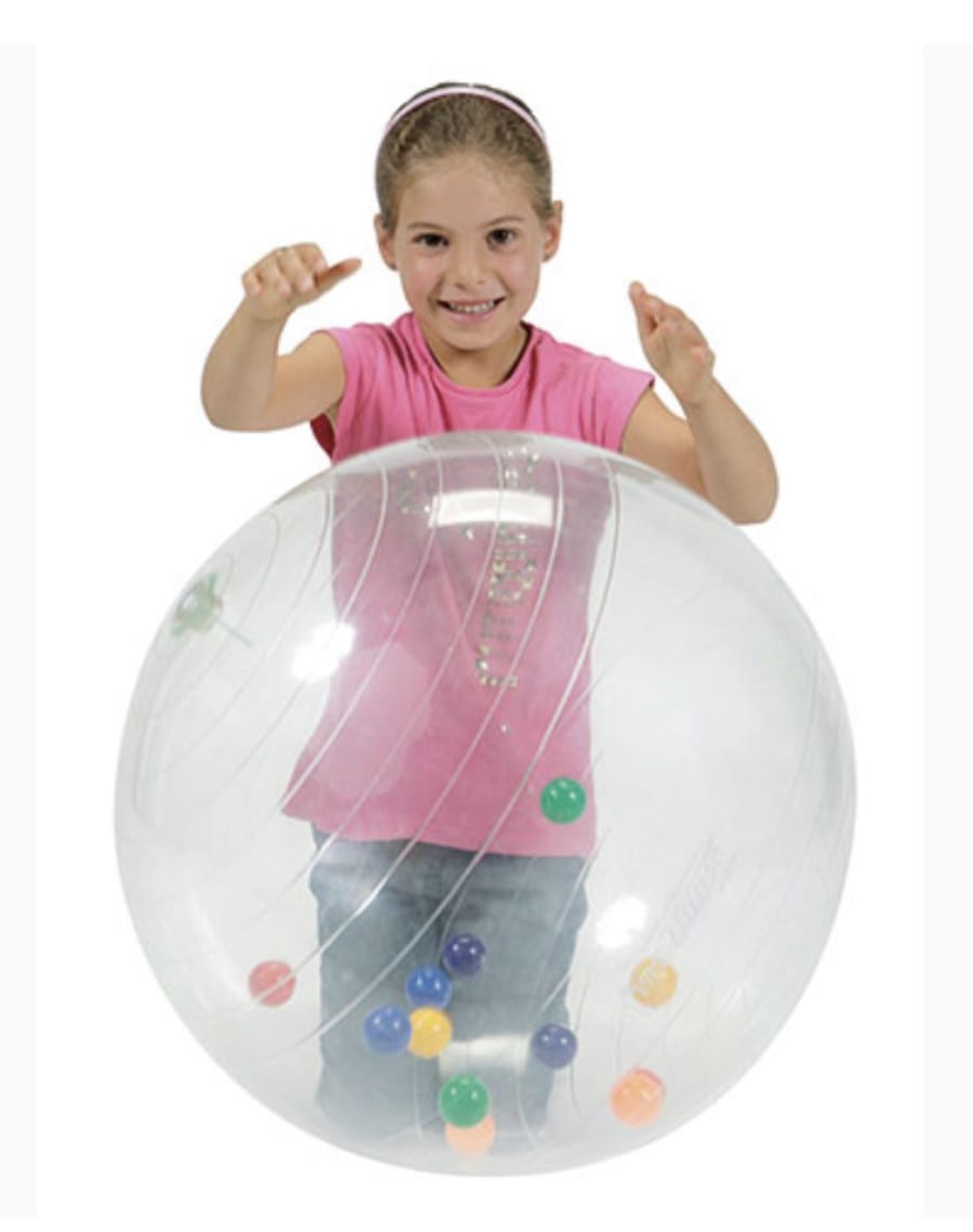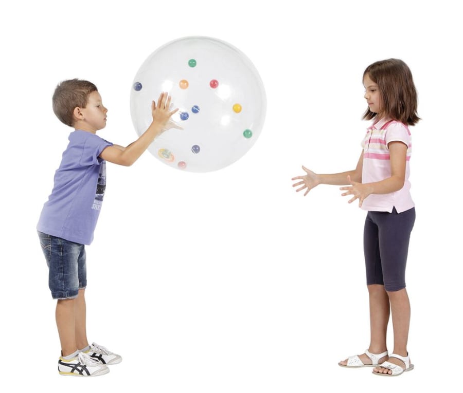 A transparent 50cm ball with 12 multi-coloured balls inside. The ball movement fosters the inner small ball movements, stimulating the eye mobility and amplifying the products three-dimensional feature. The Activity Ball can be a useful tool which enforces the spatial perception and stimulating support for the playful activity. Also recommended for the use in therapy to promote three dimensional sight and co-ordination.