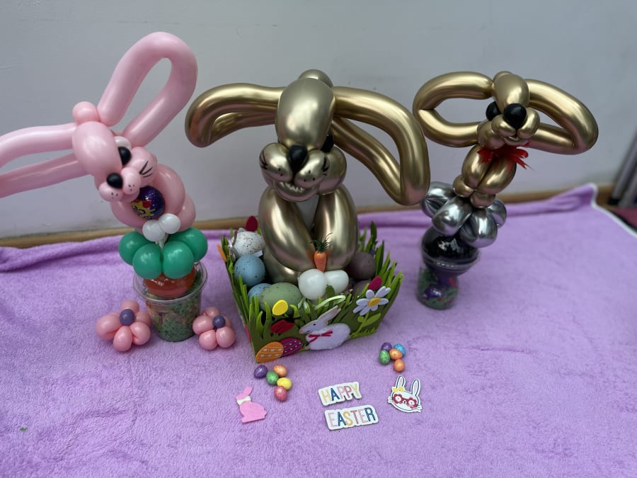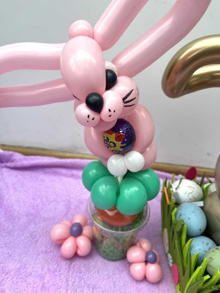 @fantasycastles Easter Bunny Balloon Cups 🐰 A fantastic Easter Treat for just £5. You can also use the little bunny as a wearablw bracelet too. Our bunnies are available in any colour and come with two Casburys creme eggs. Available now from our website. @theballoonjoystudio ♬ Easter - StudioMaxMusic