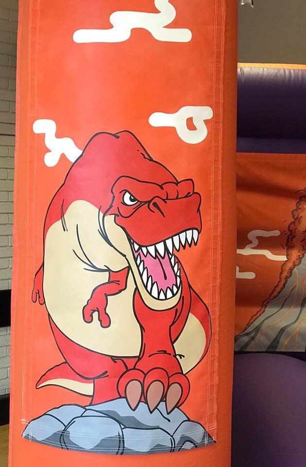 Featuring bright, hand painted artwork.