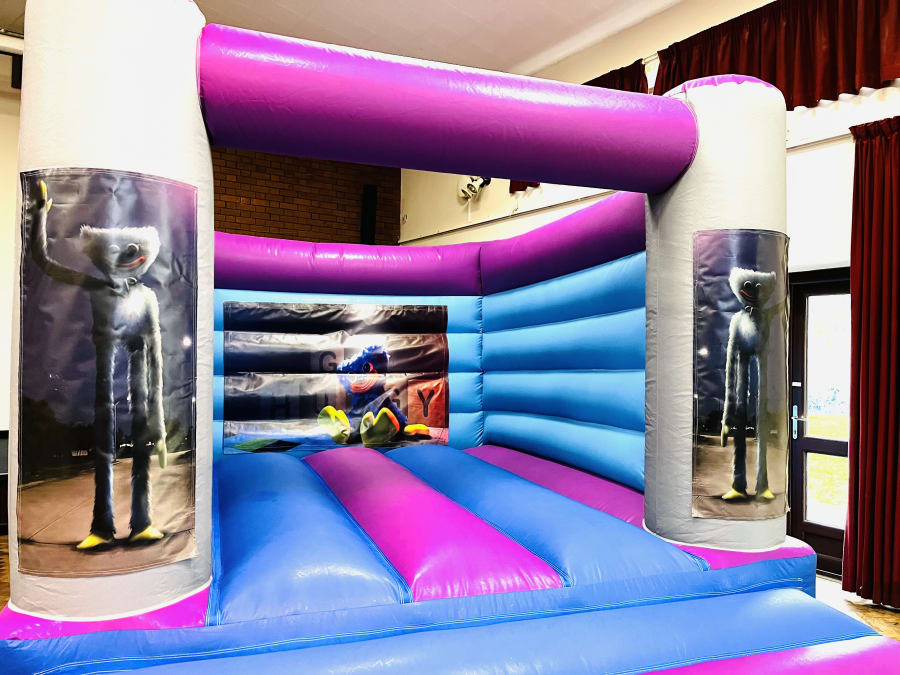 Huggy Wuggy Bouncy Castle for hire in Telford and Shrewsbury Coming soon - this popular themed castle will be so much fun at your childrens parties this winter. A great sized castle suitable for up to 6 children at a time and low height too so will fit in most indoor venues.