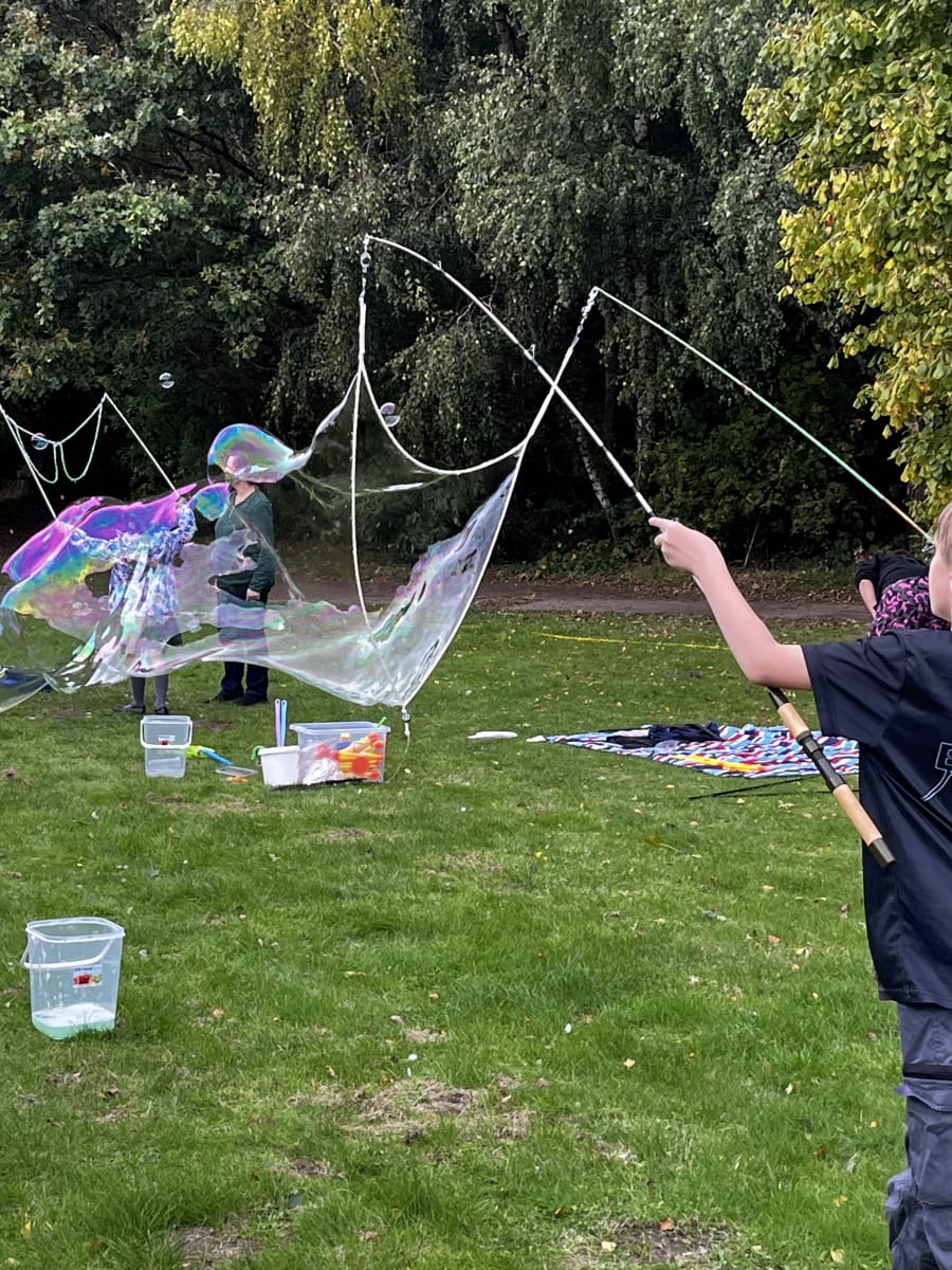 • Hands-On Experience: In the last half-hour, we invite your guests to take the reins! With a variety of wands at their disposal, everyone can try their hand at crafting their own giant bubbles. It's an engaging activity that's sure to keep everyone entertained. 👐