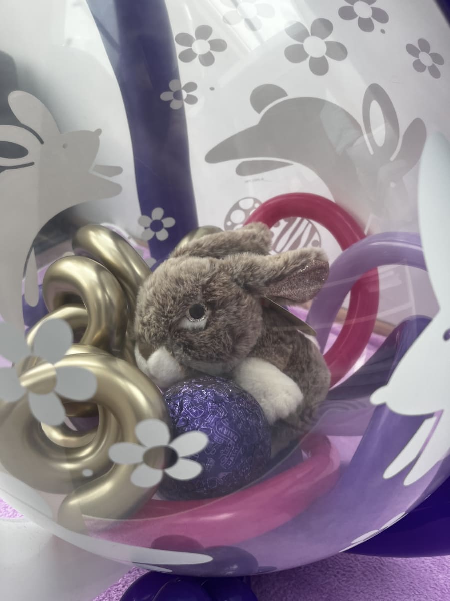 Choose from our budget-friendly options: filled with balloons only and a cute mini balloon bunny bracelet, perfect for adding your own teddy or Easter egg; or opt for a package with balloons, a large chocolate egg, and a soft bunny teddy.