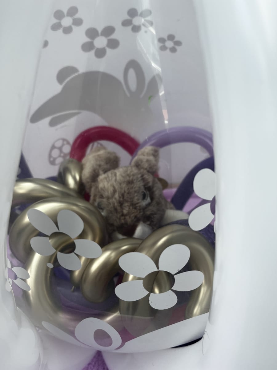 Bunny with twirly balloons and balloon bunny bracelet inside £15 (ideal if you have something of your own you want us to put inside)