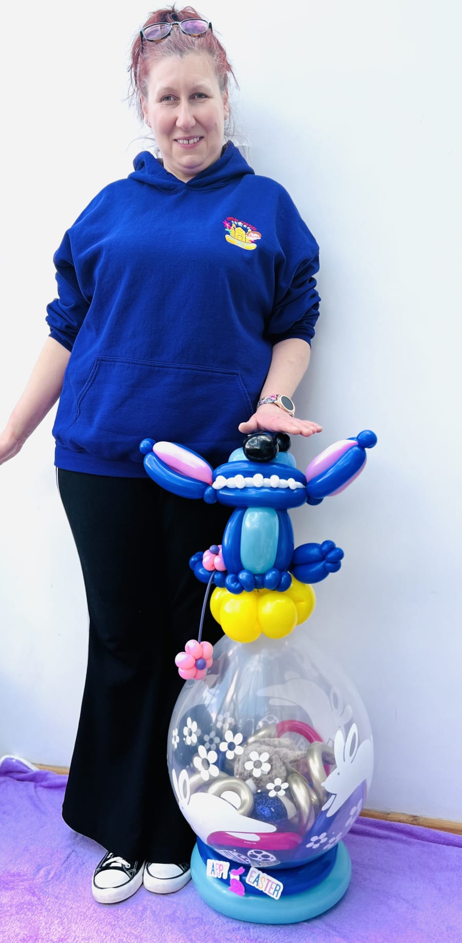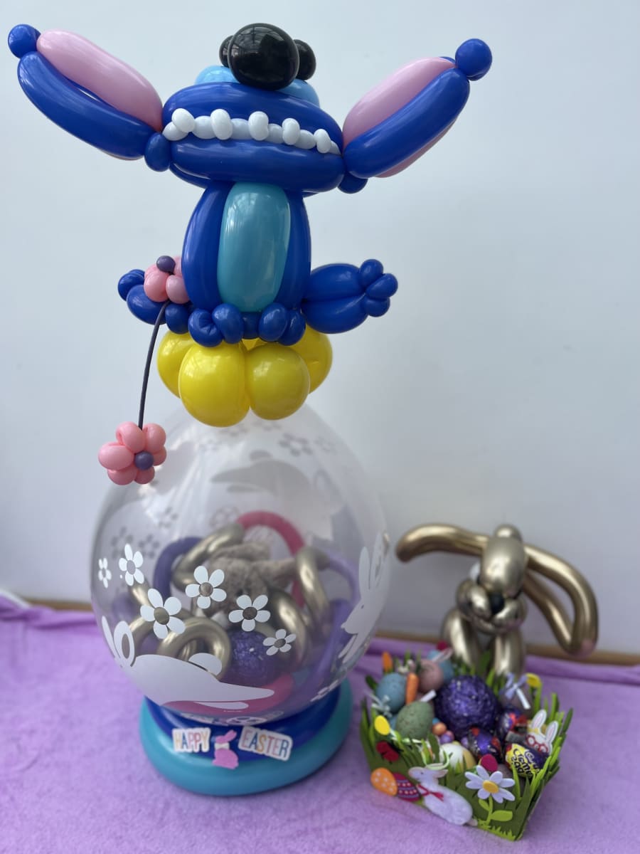 Looking for a gift that stands out? Look no further! The Stitch Easter Popping Balloon is the perfect present for Easter, guaranteed to bring joy and excitement. Starting at just £15, this one-of-a-kind creation is sure to put a smile on the face of the lucky recipient. Add an Easter egg for £5 (Order books closed for Easter 2024. Taking Easter orders for March 2025)