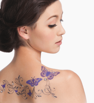 These temporary tattoos last for several days and are water resistant. We can also add rhinestones for extra glamour.