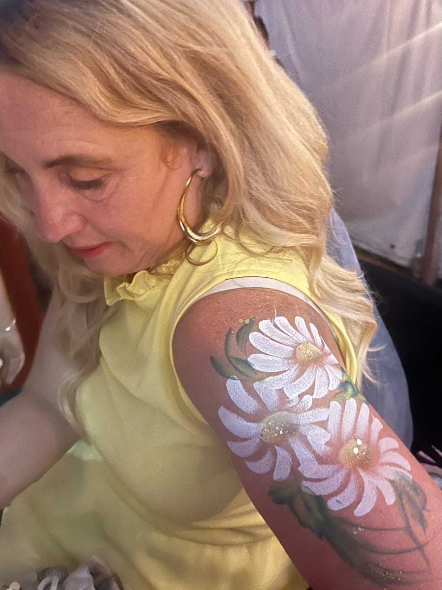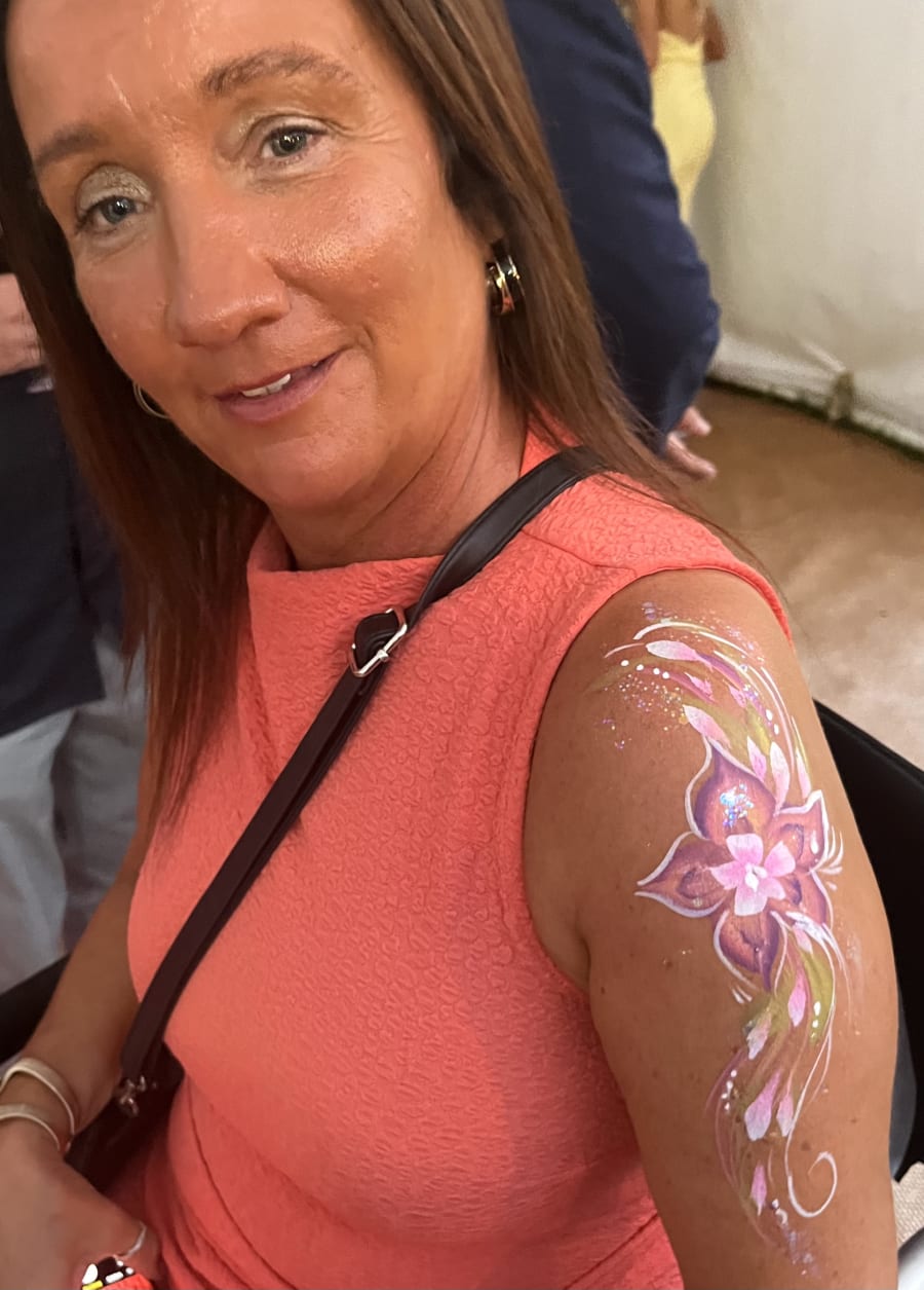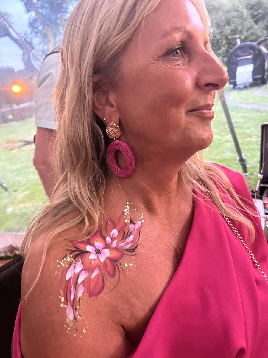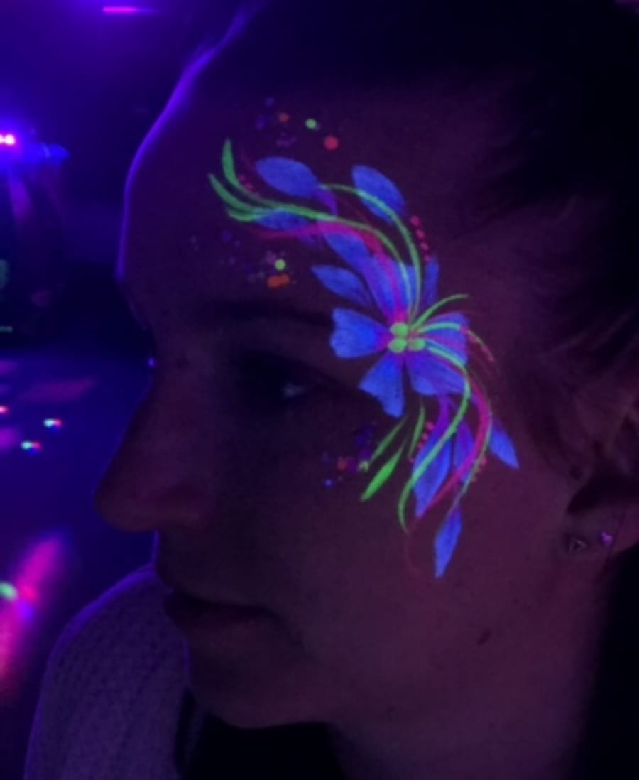 We can paint faces, arms and decolletage area and have standard paints plus UV reactive ones which glow under night club black lights.