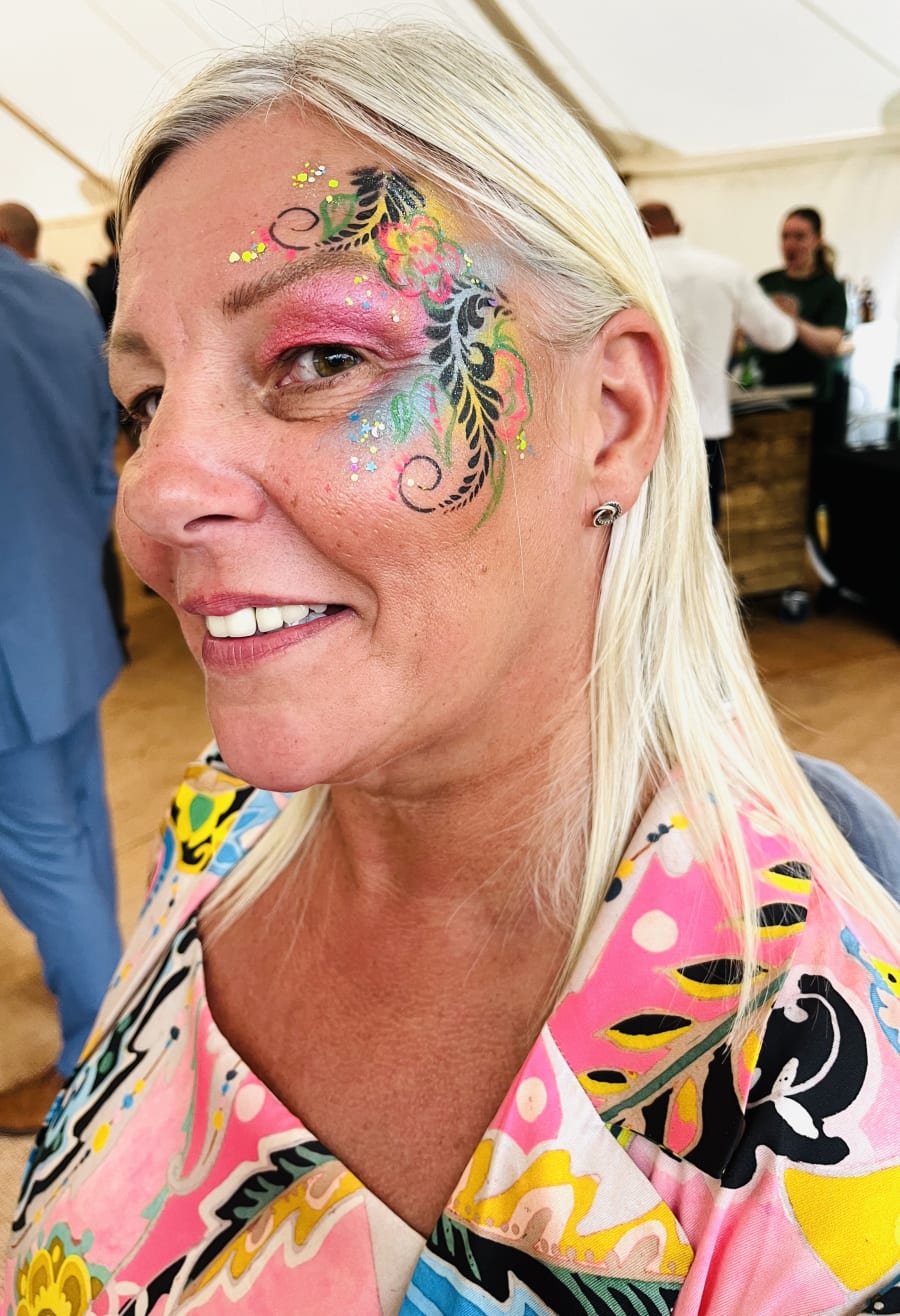 Using cosmetic grade glitters, face paints and gems we can create all the on trend designs ready for the party reason. Ideal for Weddings, Hen Parties, Festivals and Teen\Adult parties. This is also a great package if it's mainly an adult event with perhaps a few children present who may want traditional type face painting as well.