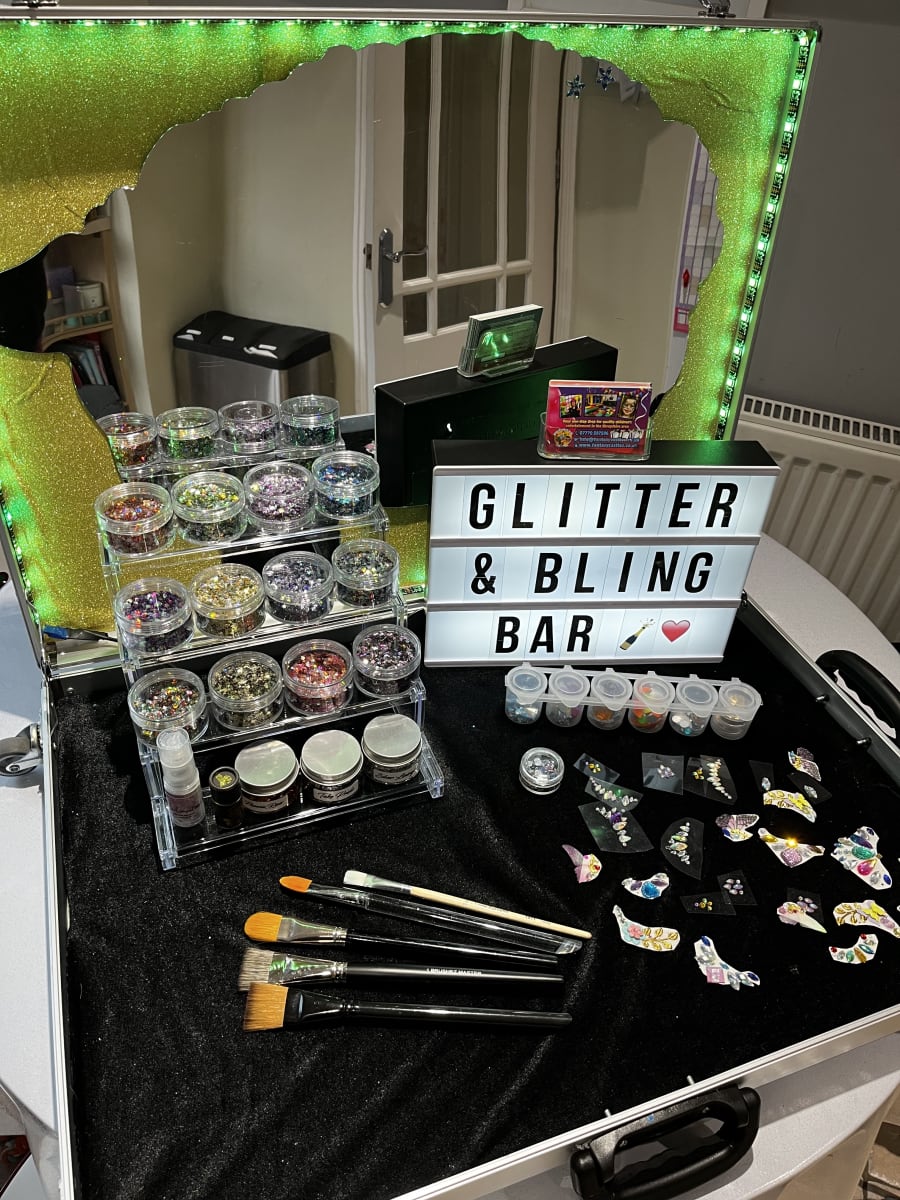 Welcome to our eco-friendly Bio Glitter Bar Hire service! If you're looking to add a touch of sparkle and sustainability to your special event in Telford, Shropshire, then you've come to the right place. Our team of trained artists are here to provide you with a unique and memorable glitter experience that is both safe for you and the environment.