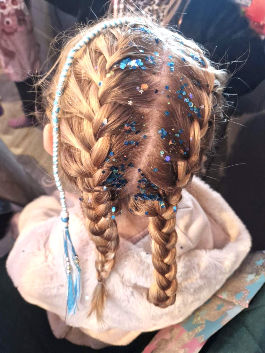 - ✨ Hair Braiding/Plaits: Let your child's creativity shine with stylish clip in coloured braids or fishtail, dutch or french plaits. With or without glitter.