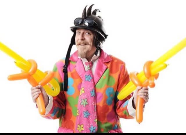 All of the above AND more plus some music from a guitar or banjo for musical games and the now infamous smelly sock race. All parties conclude with balloons for all the children shaped into animals, hats, flowers, swords etc..