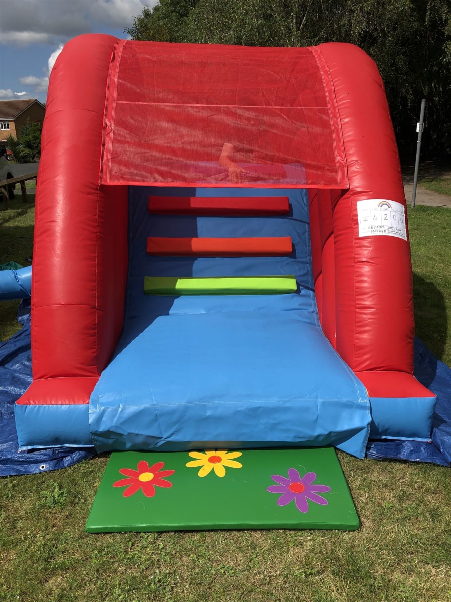 Our super bright and colourful generic themed slide is perfect for under 5's. Add it onto our matching Biff Bash obstacle castle and soft play set to make a great toddler party package or as a stand alone item.