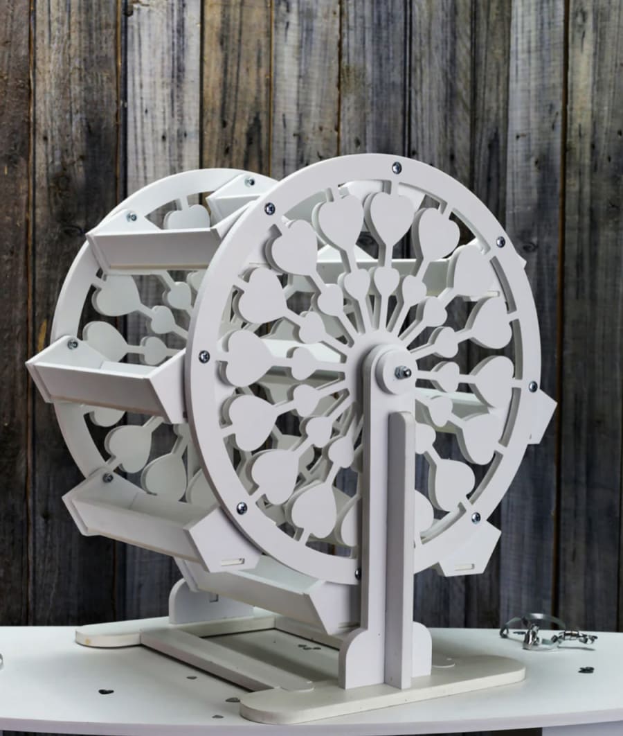 Elevate the fun factor at your next event with our delightful 2ft high white Sweet Ferris Wheel! Perfect for parties, weddings, Christenings, and baby showers in Telford, Shrewsbury, and surrounding areas, this eye-catching Ferris wheel is a must-have addition to your event setup.