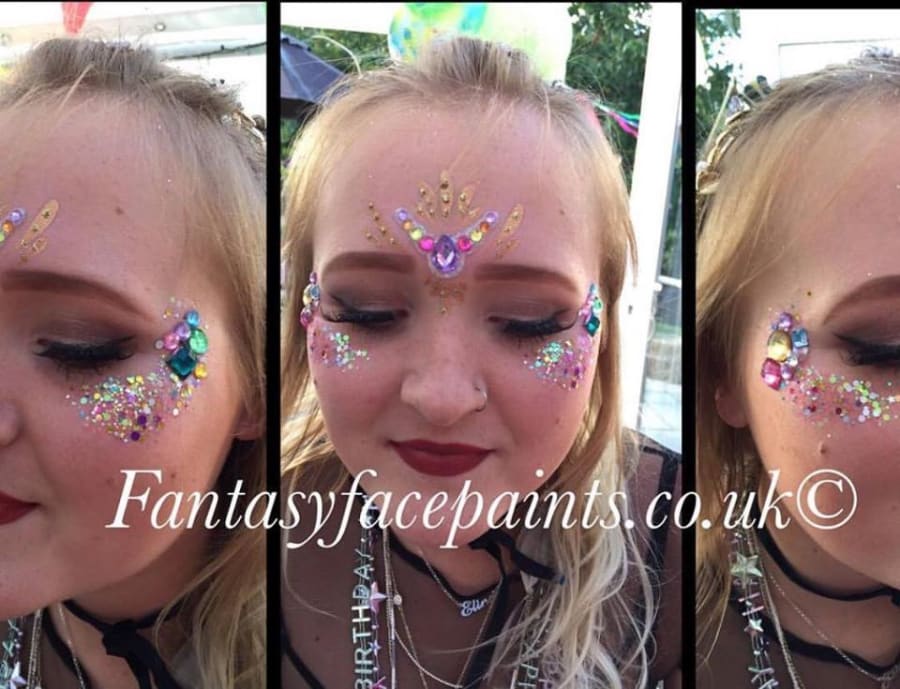 💎 Our festival face gems are reusable and can be applied to the face and decolletage. Our experienced staff, who are insured and trained professionals, will ensure that each guest receives a personalised and stunning look that will make them feel like a true festival party animal.