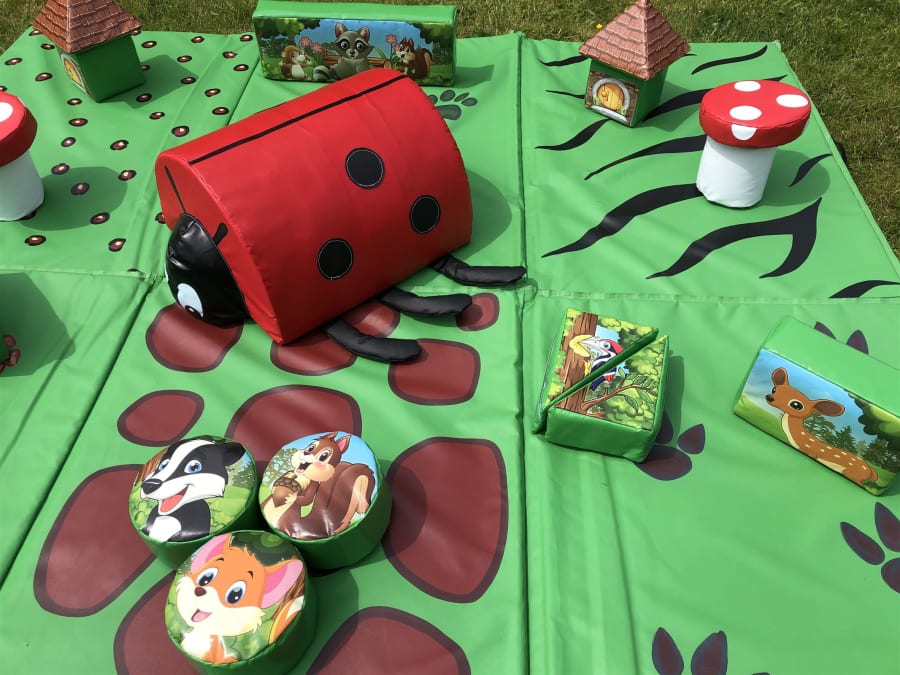 Our cute 22 piece woodland soft play set is ideal for a boys or a girls party with its generic theme.