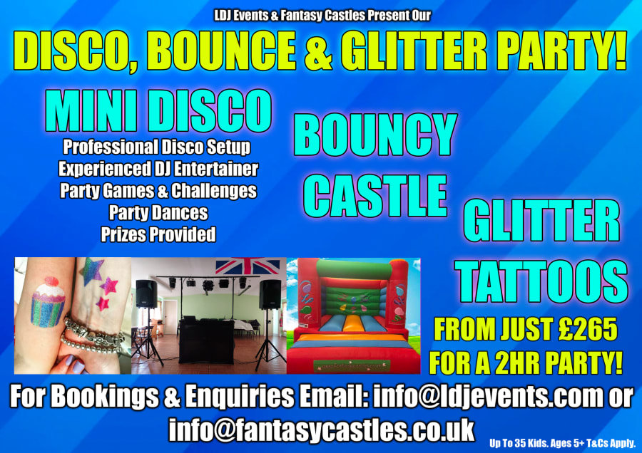 A good sized venue would be required for this party due to the equipment and space needed for the castle and disco games. If you need help finding the right venue please have a look at our list of local halls and contact details HERE