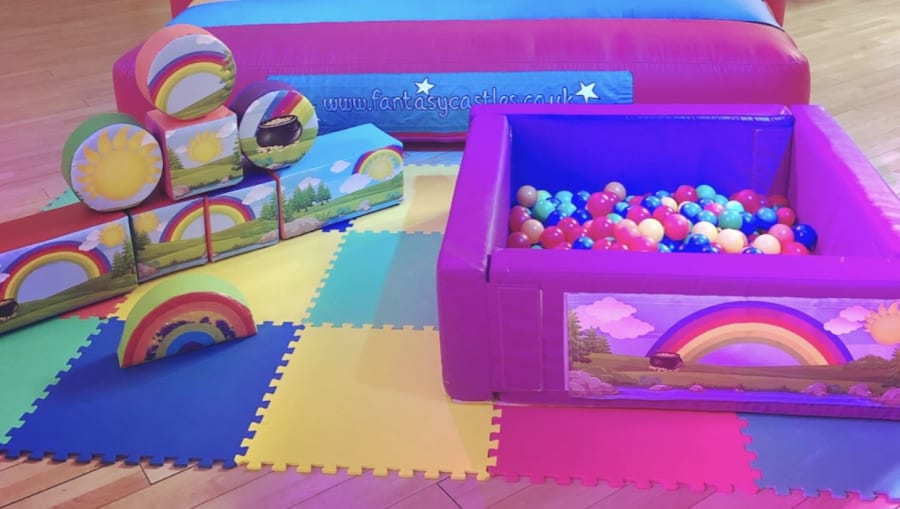 Our rainbow themed bouncy castle, rainbow inflatable toddler slide, rainbow soft play and rainbow ball pool is perfect for a rainbow themed birthday party and ideal if there is children of all ages coming.