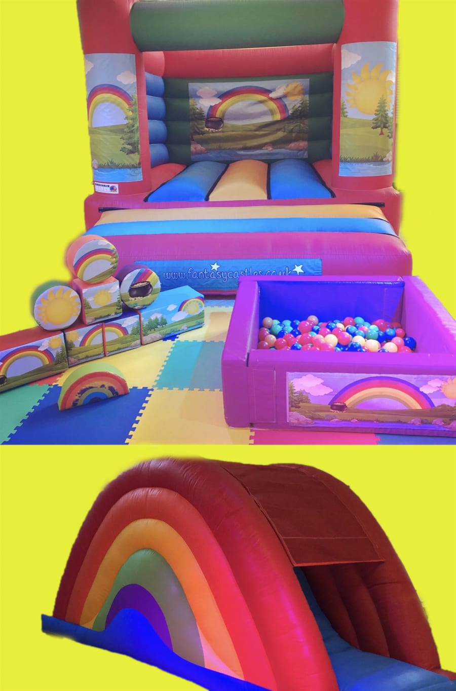 Mega Rainbow Bouncy Castle Party package for hire in Telford & Shrewsbury