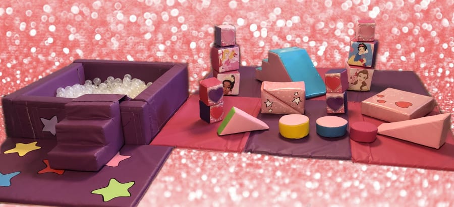 Also included in this package is our beautiful bespoke GLITTER step and slide and 3 pieces of soft play. The glitter soft play is new to the UK and we are one of the first few hirers to stock these items.