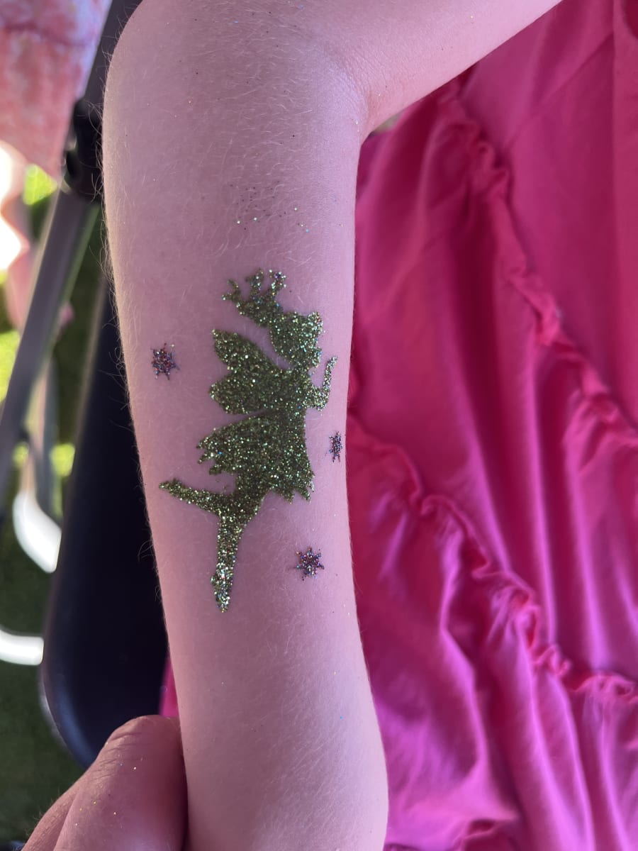 - 2hr of glitter tattoos - we have over 140 designs to choose from including animals, superheroes, girly themes, gaming, football teams and more. Over 3's only.