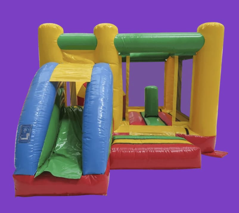 Choose from two of our most popular inflatables - the blue party time slide combi which is suitable for all ages or the multi coloured one with mini obstacles inside which is perfect for under 6's. Please check the castle will fit at your chosen venue before booking as they are both different heights (see below).