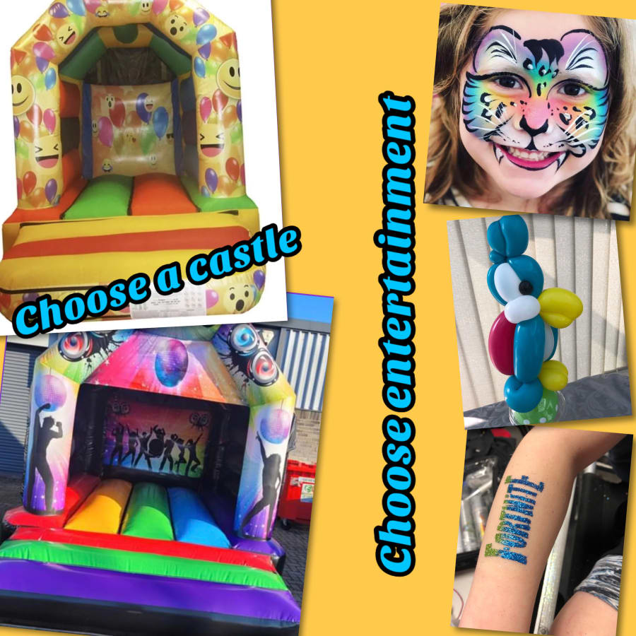 Available to book May-August only. This package is brilliant for parties at home. We have a choice of two different sized Bouncy Castles which have built in sun shades and 3 choices of entertainment :