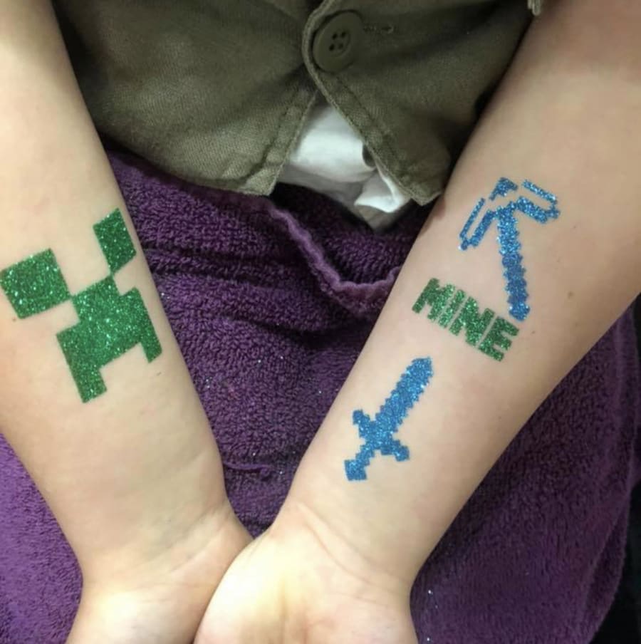 Our glitter tattoos last for several days with care and are applied to the arms. They are water resistant too and come in a range of colourful glitters. They are a great alternative for those children who don't want to have a face paint.