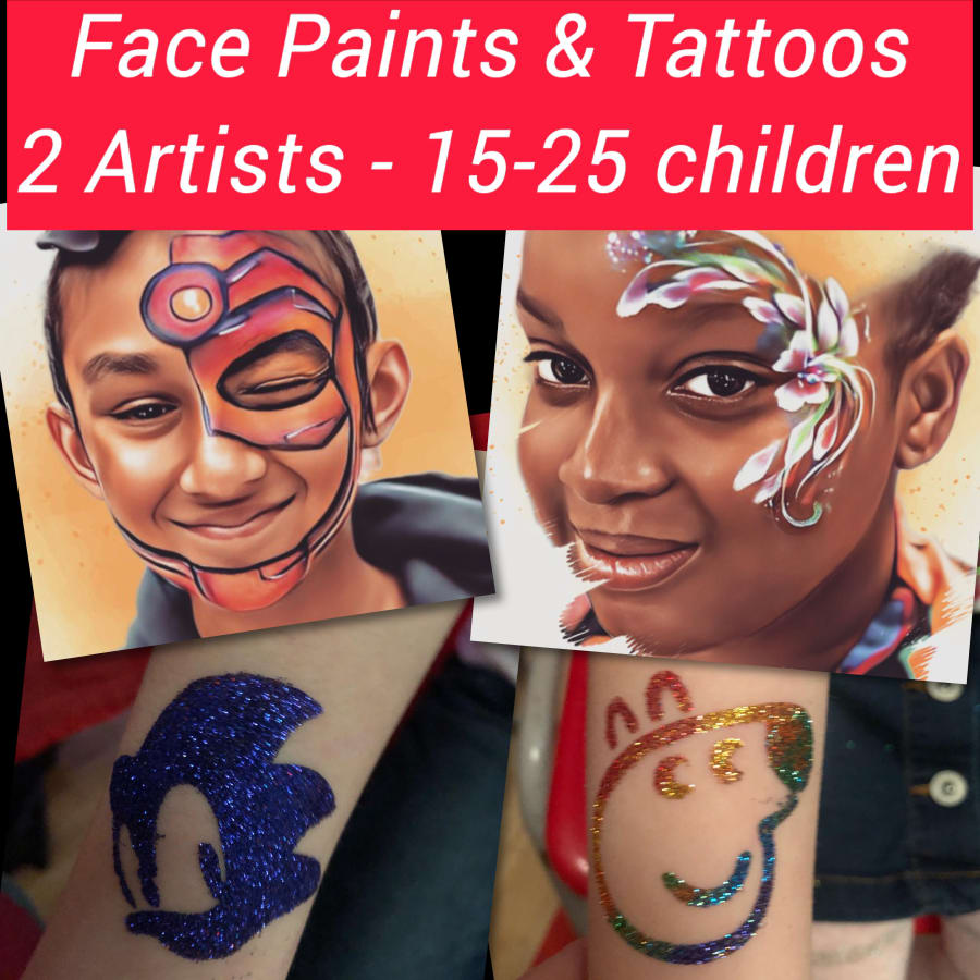This 2 hour party package of face panting and tattoos will cater for 15-25 children with two artists attending your party.