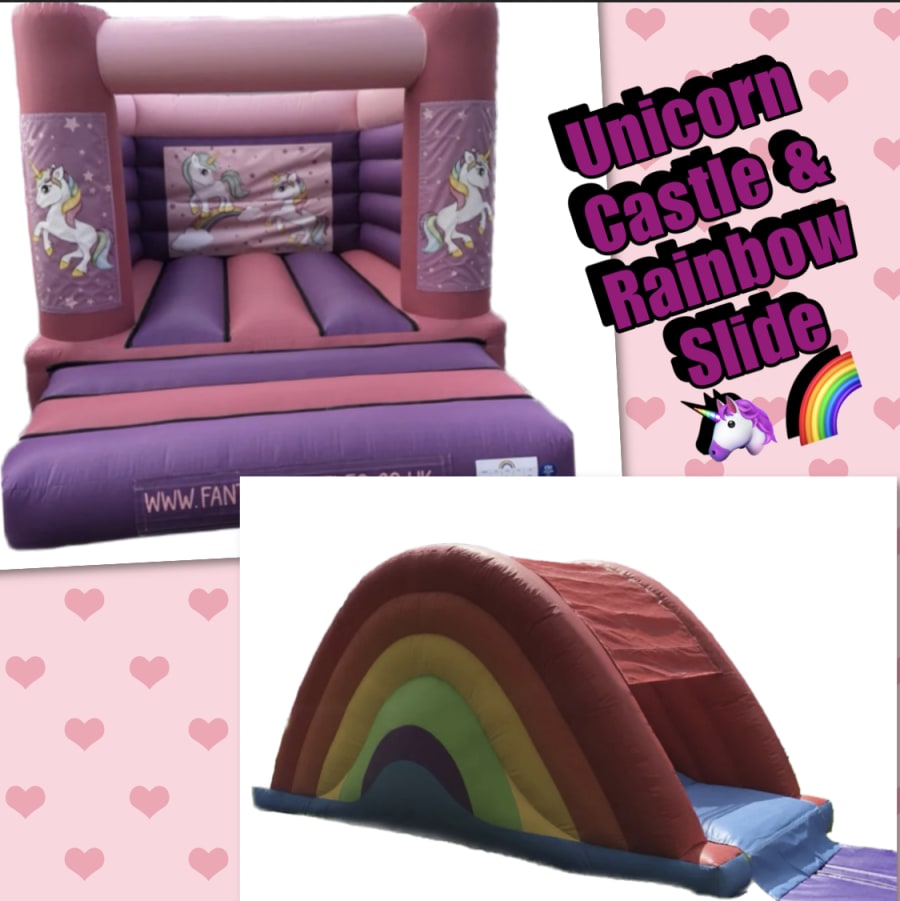 Our rainbow toddler slide and unicorn bouncy castle is perfect for a party where you have children of all ages coming.