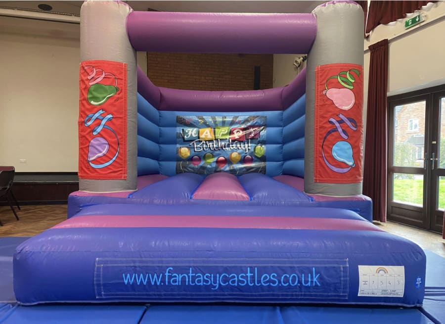 Pink & Purple Bouncy Castle needs a minimum ceiling height of 10ft