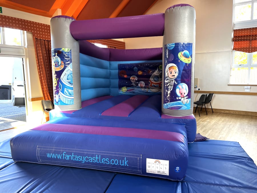 Bouncy castle needs a minimum space of 25ft x 18ft and ceiling clearance of 10-11ft depending on the castle chosen.