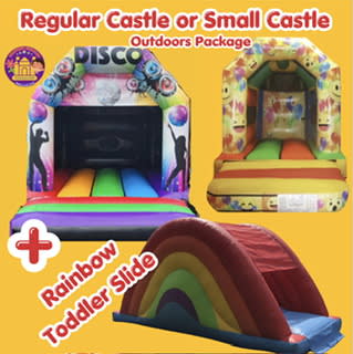 🏰 Choose either our regular-sized Disco Themed Bouncy Castle or the adorable Emoji Themed Bouncer.
