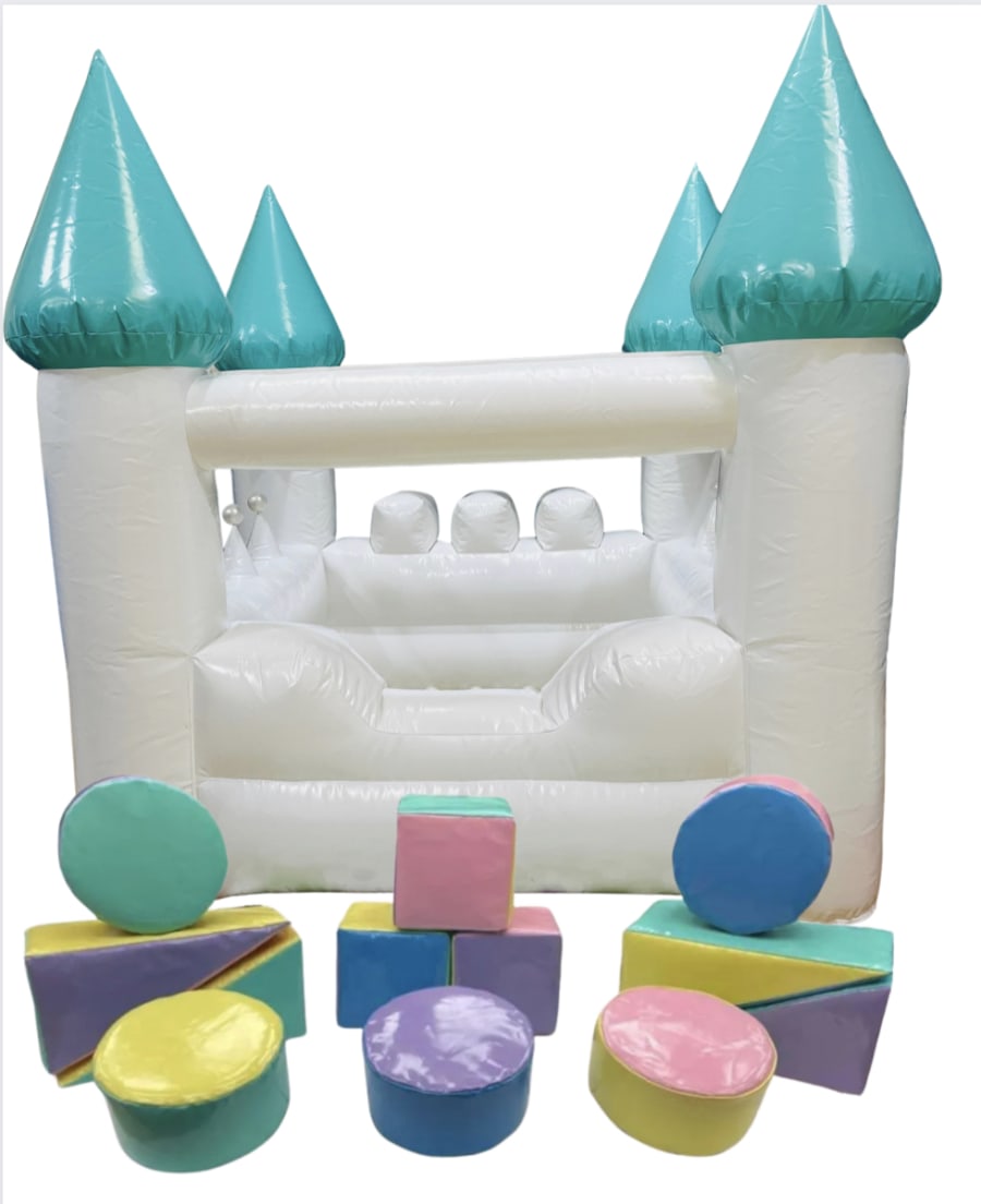 Introducing our luxurious ๐ White and Pastel Deluxe Soft Play for hire in Telford & Shrewsbury ๐