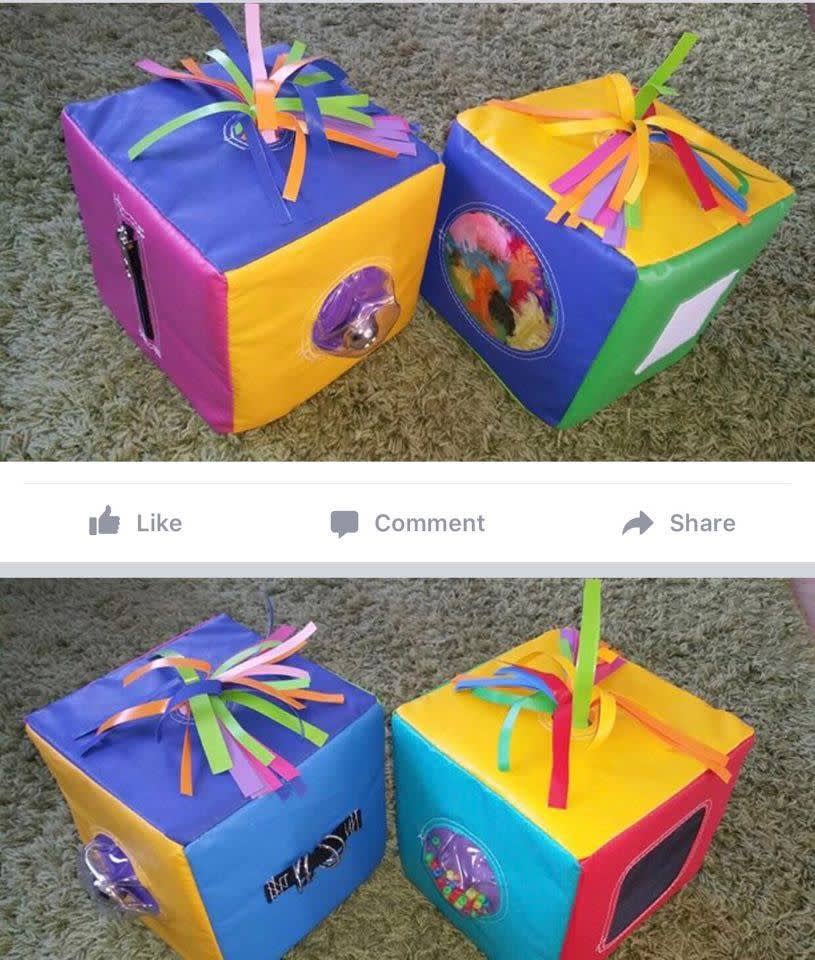 Made of soft foam covered in bright, colourful wipe clean surfaces these shapes have a multitude of tactile surfaces to explore. zips, Velcro, safety mirror, carpet, bells. Our soft play is set up on safety matting too.